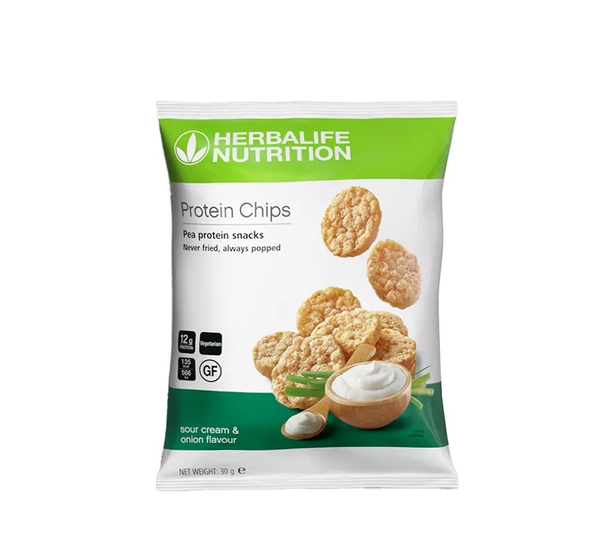 Herbalife протеински чипс е протеинска ужина – печена, а не пржена, содржи квалитетен протеин од грашок и е неодоливо крцкава. Се продава во пакување од 10 ќесички.